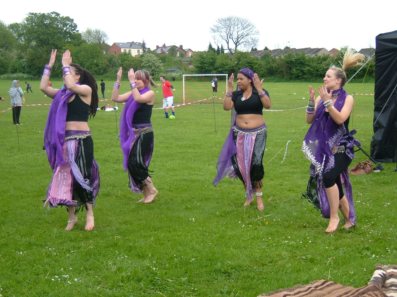 The afternoon brought lots of rain but it didn't stop a Bellydancing demonstration by Belly Dance Elements from Stirchley Community Centre, in the main arena