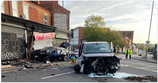 By Ben Perrin 09:00, 28 SEP 2020 Two vehicles are pictured with huge damage on Pershore Road, at the junction of Dogpool Lane, in Selly Park, after the crash at 6.30am 28th September 2020 link